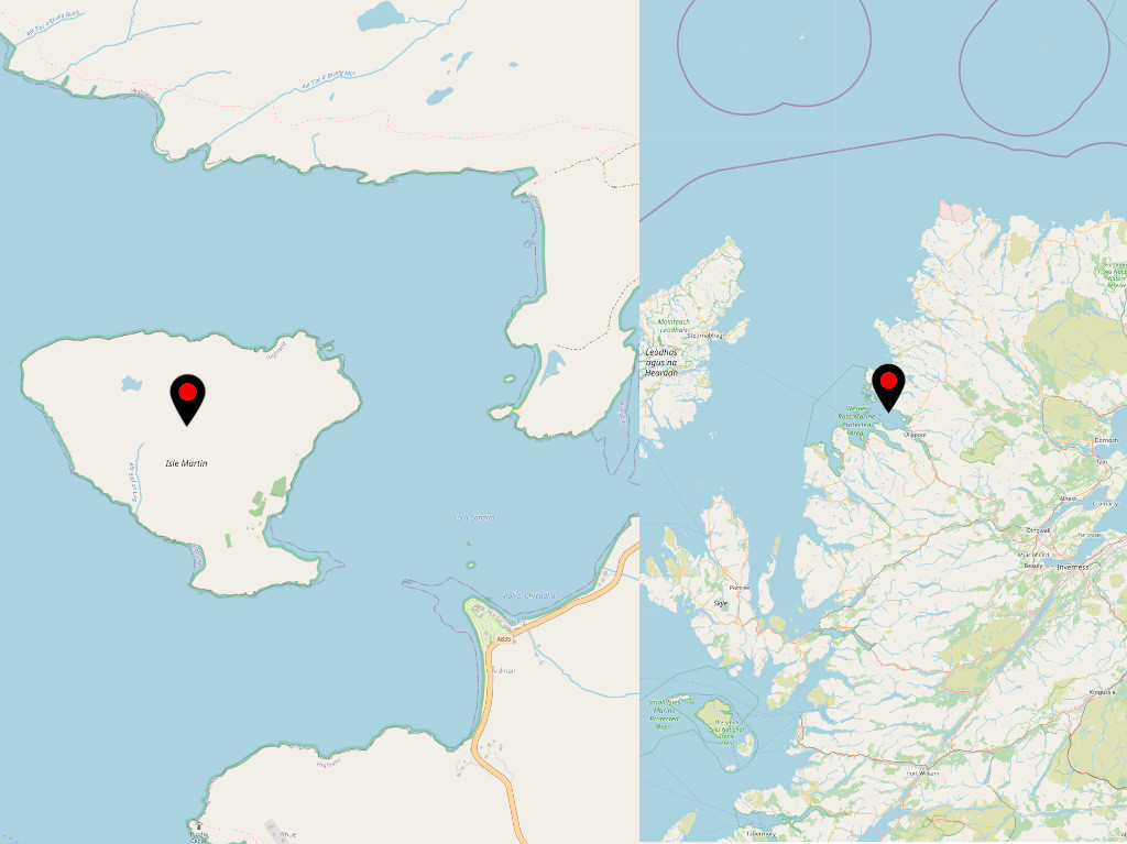The Isles of Martin, an uninhabited island in Loch Broom on Scotland's west coast, has a stone with a Latin triple cross on it. About 300–400 AD, the island's namesake, Saint Martin, is said to have founded a monastery there.