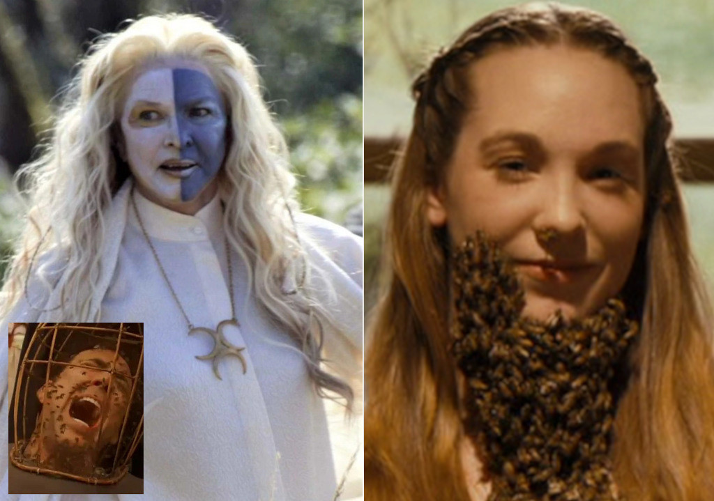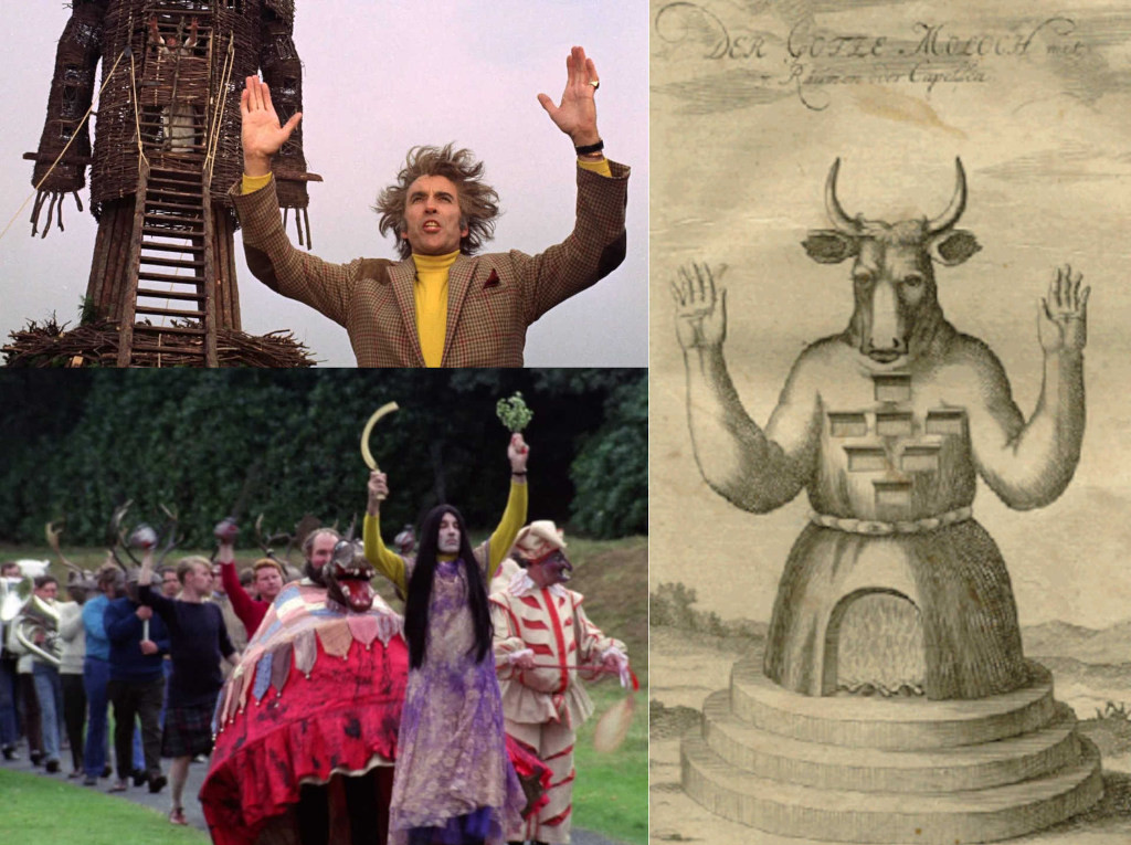 The triple cross is Molech abstracted as a hobby horse, punch, and a crossdressing druid in the 1973 movie Wicker Man. In male and female roles, the druid wears a yellow polo neck sweater. Note the striking resemblance between Molech and the Chicago Bulls logo; this film enacted a Christi Testa Menta sacrifice of the Sun King.