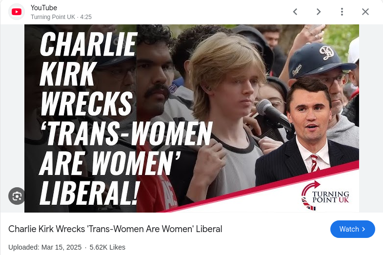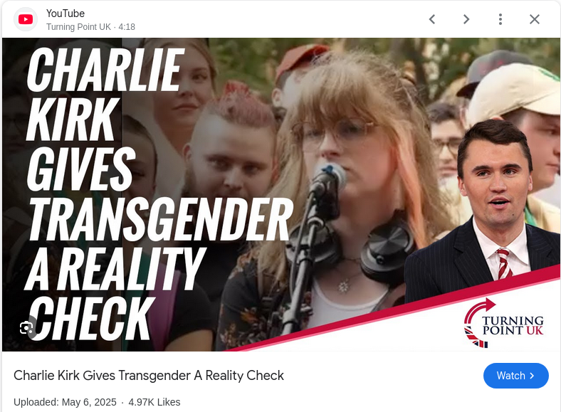 It was said that the person who shot up a Catholic school in Minneapolis was transgender, so Kirk said that all trans people were responsible for the attack.